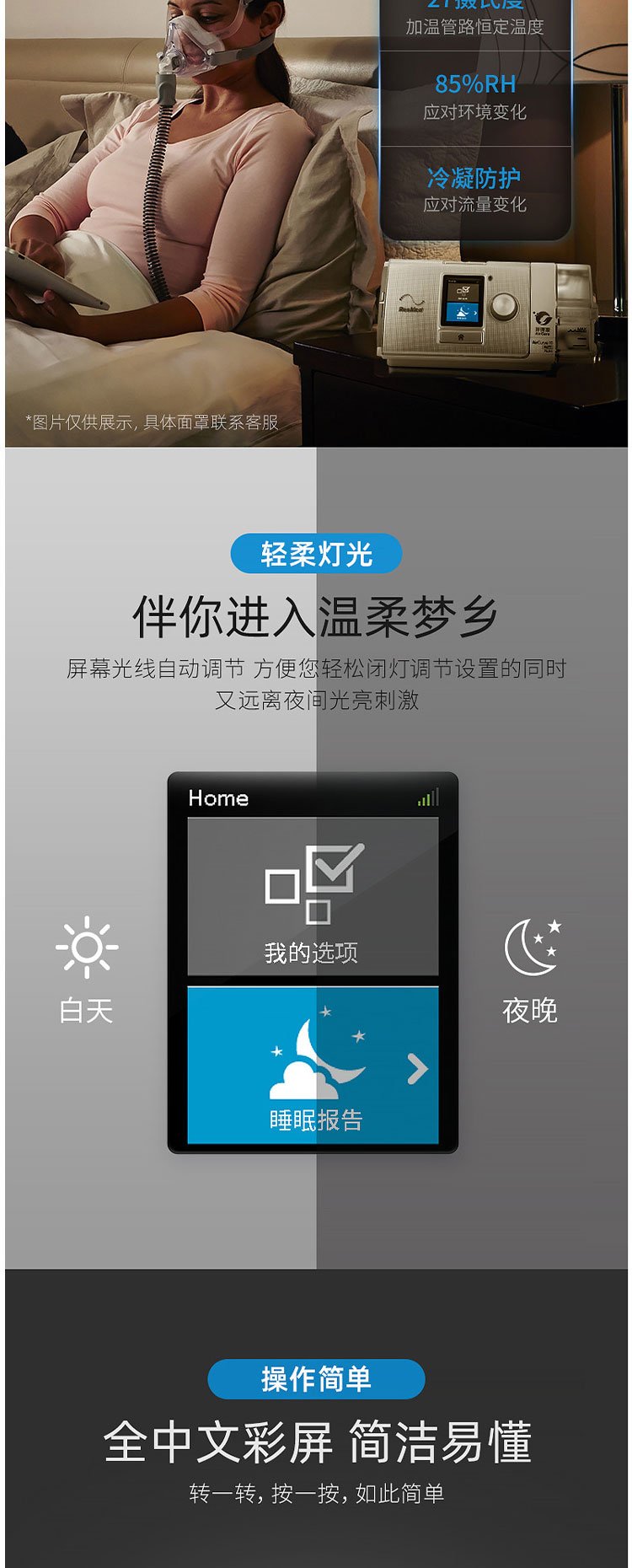 回复:瑞思迈呼吸机设计非常人性化,操作非常直观,简单,但是需要在购买时经专业人员当面教会使用,否则容易因为误操作引起不必要的安全隐患。