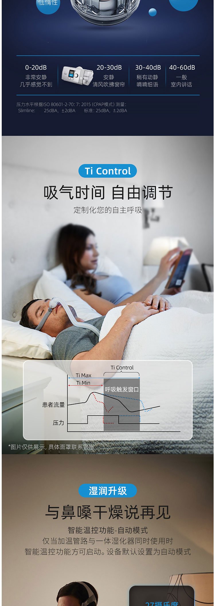 回复:呼吸机的工作原理是对呼吸道持续正压通气,绝大部分的客户都能很好适应,少数人需要几天还适应。